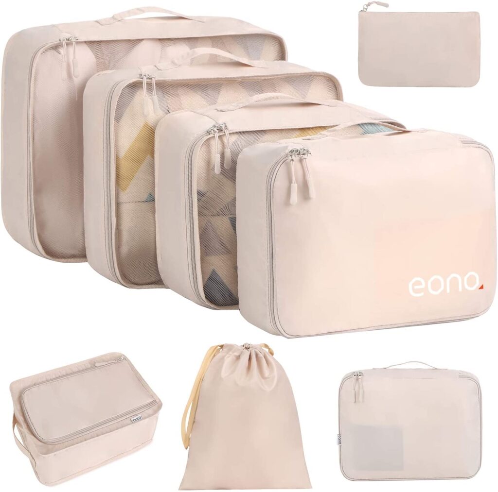 Another organizing hack when it comes to packing light and staying organized when traveling is to always use packing cubes. It helps you fit much more in your suitcase and keeps you organized, especially if you’re going to more than one hotel on your trip. Our favorites are from Amazon and are less than $30!