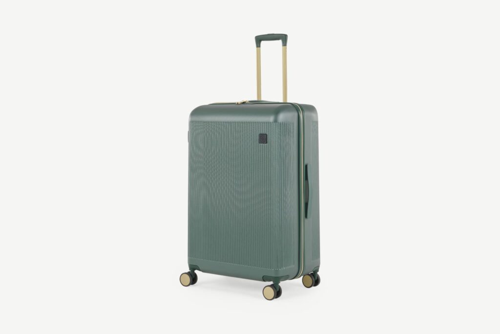 I always use a carry on suitcase, I find I can fit so much more into them, rather than using a handbag or backpack. I love this carry on suitcase in this green and gold colour. Not only is the design super cute, it is also really light weight and can be securely locked using the combination lock to keep your possessions safe.