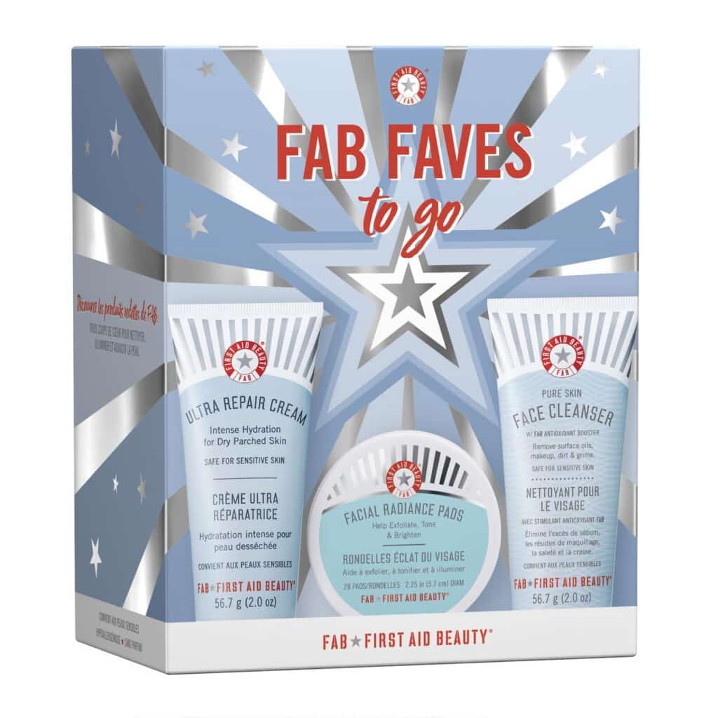 Instead of heavy bulk full size products. Taking mini versions can save you much needed room in your case. This kit from First Aid Beauty contains a cleanser, exfoliating pads and a moisturiser. All you need to stay fresh and glowing on your travels.
